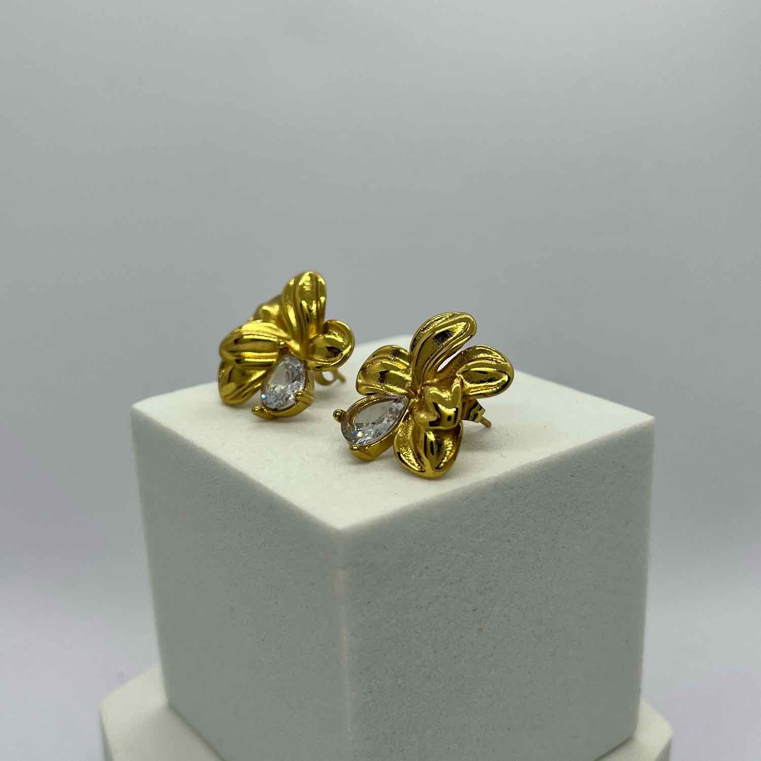 Beautiful Gold Plated Stainless Steel Flower Shaped Stud Earring