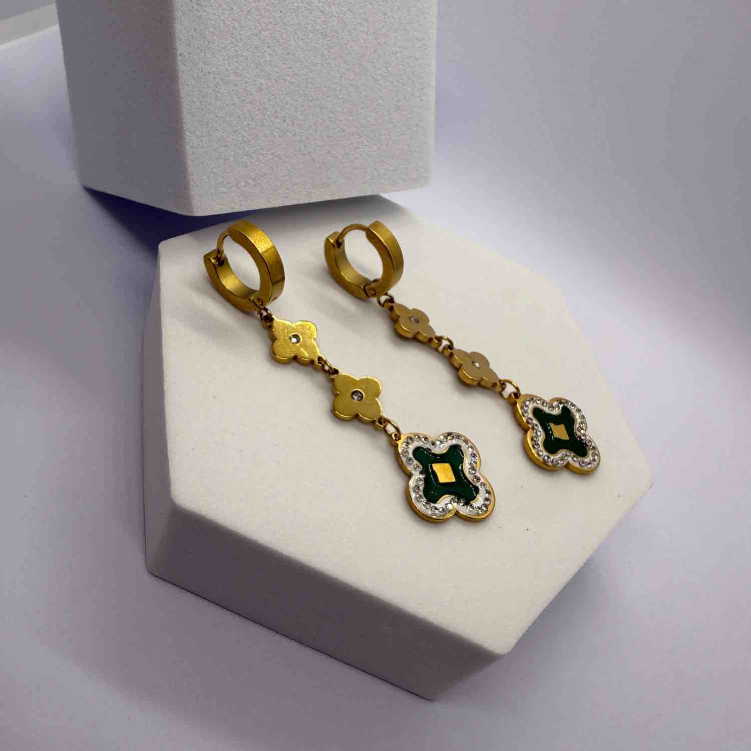 These Elegant Green Floral Dangle Droop Earrings showcase a sophisticated design that seamlessly blends nature-inspired charm with refined style. Featuring delicate green floral motifs, they create a graceful movement with every wear, enhancing any ensemble with a subtle pop of color and elegance. Perfect for both formal occasions and casual outings, these earrings offer a polished finish that complements a variety of looks. Crafted for comfort and lasting appeal, they are an exceptional choice for those seeking timeless, expert-crafted jewelry.