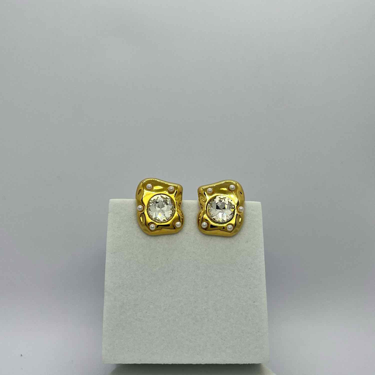 These Molten Gold Plated Stud Earrings offer a refined touch with their unique molten texture, creating a contemporary yet elegant look. Crafted with a durable gold plating, they ensure lasting shine and resistance to tarnish. Their minimalist design makes them versatile for both everyday wear and special occasions, providing an effortless way to enhance any outfit with sophistication.