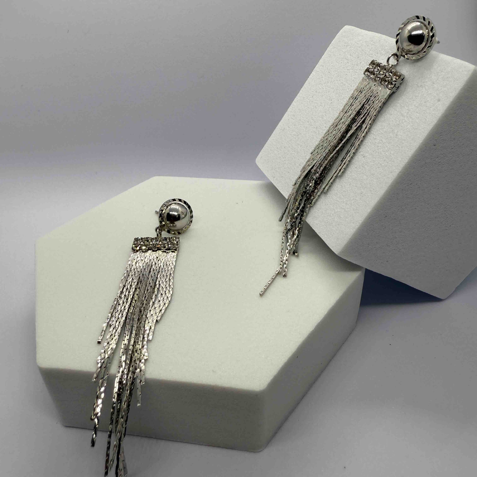 Silver Plated Chain Tassels Fancy Danglers Earrings